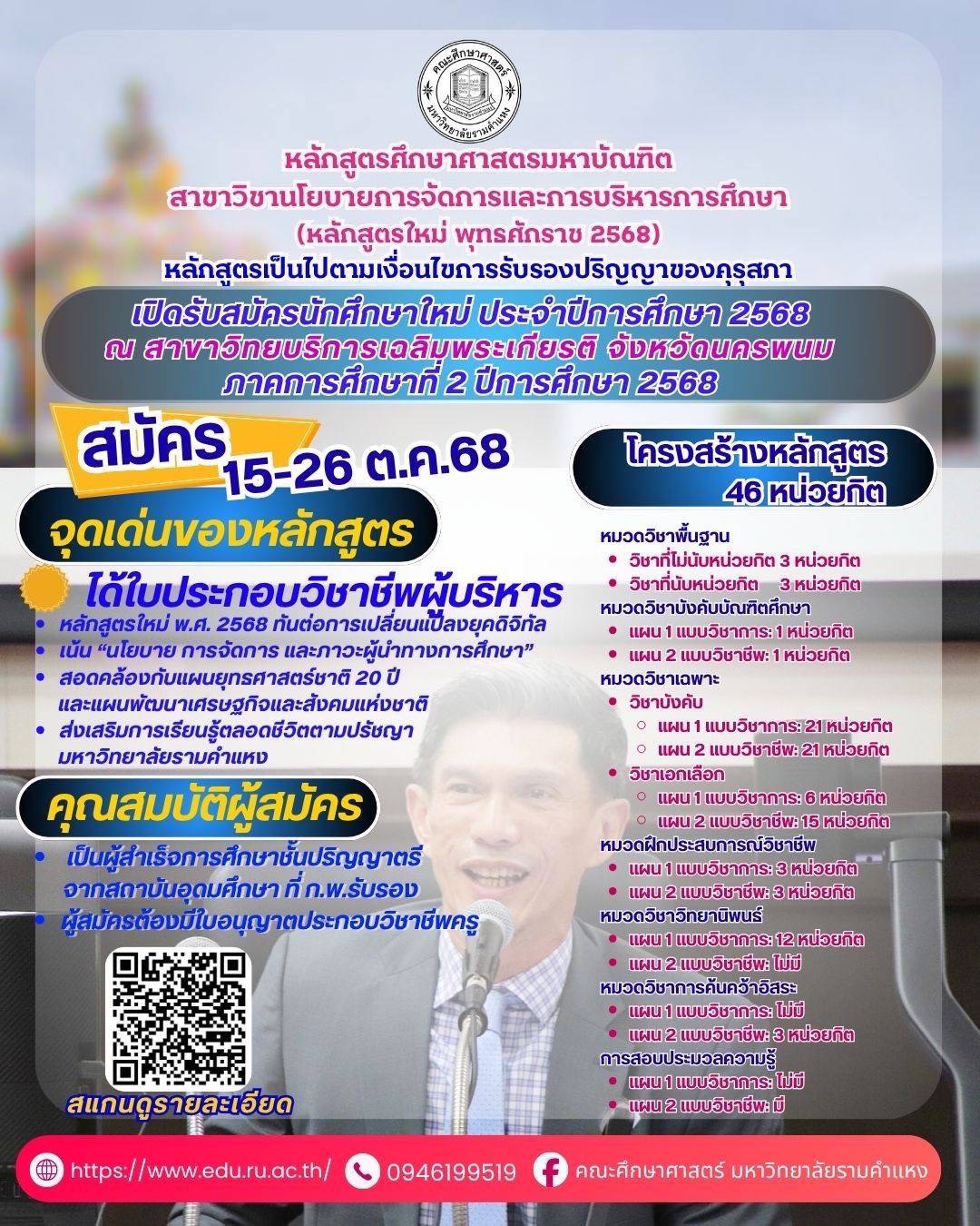 ประกาศคณะศึกษาศาสตร์เรื่องกำหนดโครงสร้างกิจกรรม เสริมความเป็นครูหลักสูตรศึกษาศาสตรบัณฑิต (หลักสูตร 4 ปี) (หลักสูตรปรับปรุงพุทธศักราช 2562) รายละเอียด |
